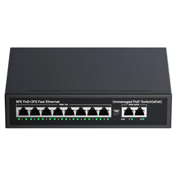 100Mbps 8-port PoE + 2 100Mbps network ports