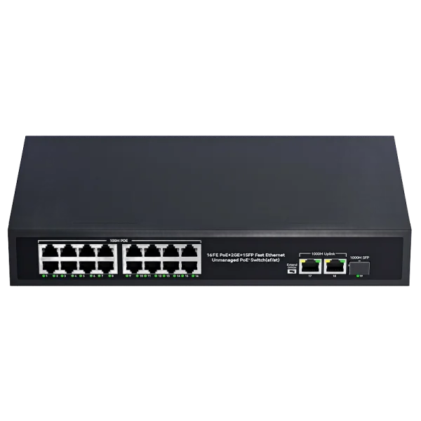 100Mbps 16-port PoE + 2 Gigabit network ports + 1 SFP optical port