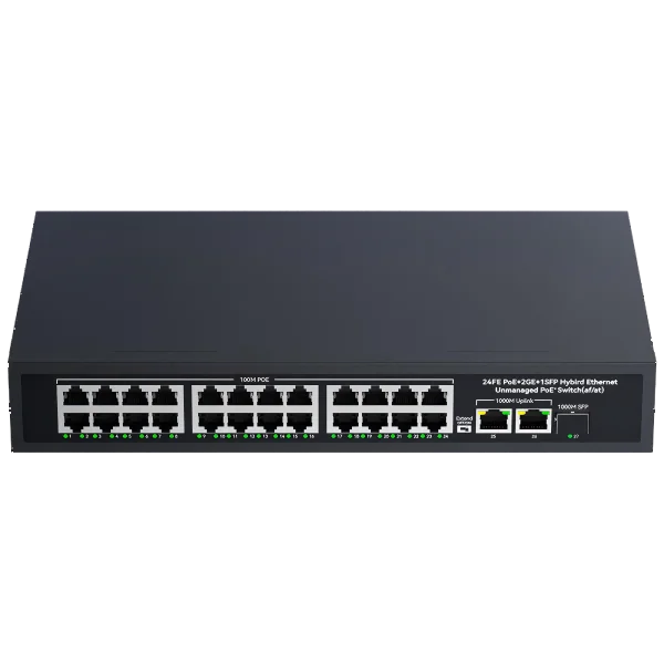 100Mbps 24-port PoE + 2 Gigabit network ports + 1 SFP optical port